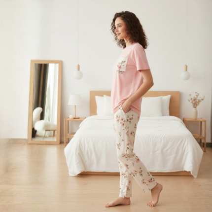 Pink Flower Printed Trouser