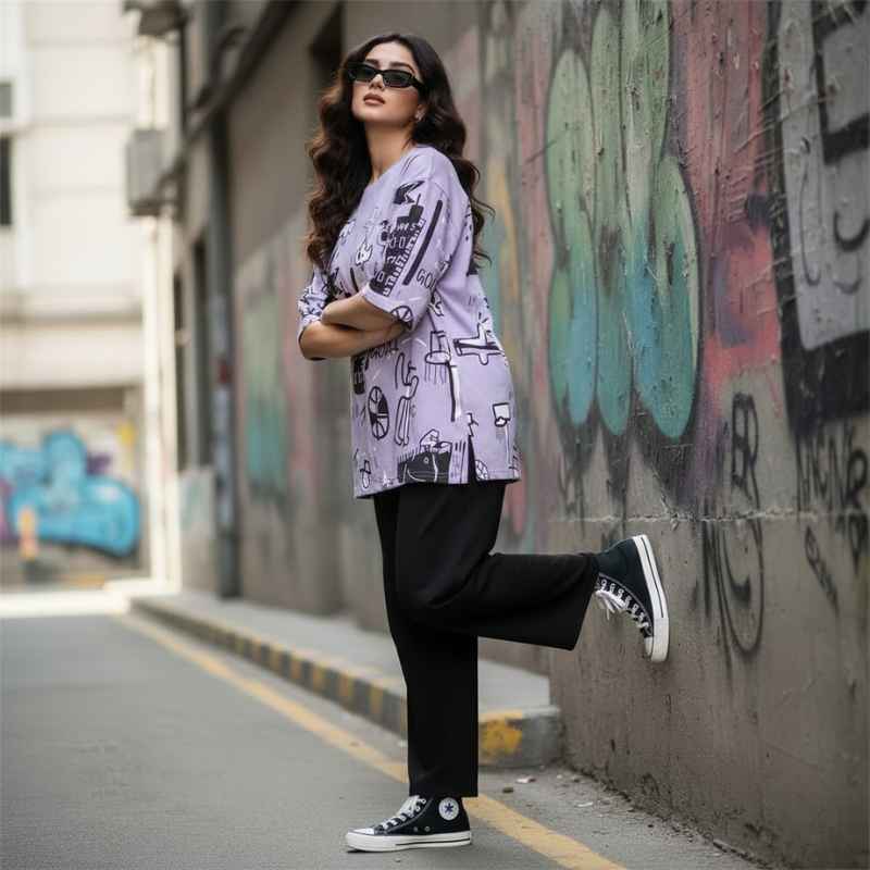 Galactic Purple Shirt & Black Pants Set