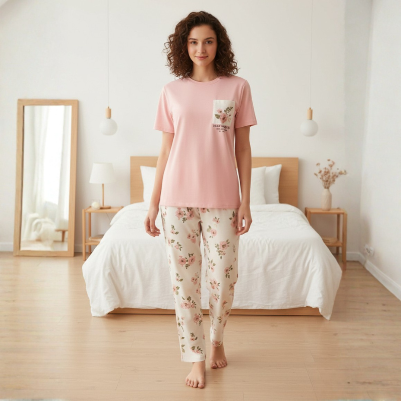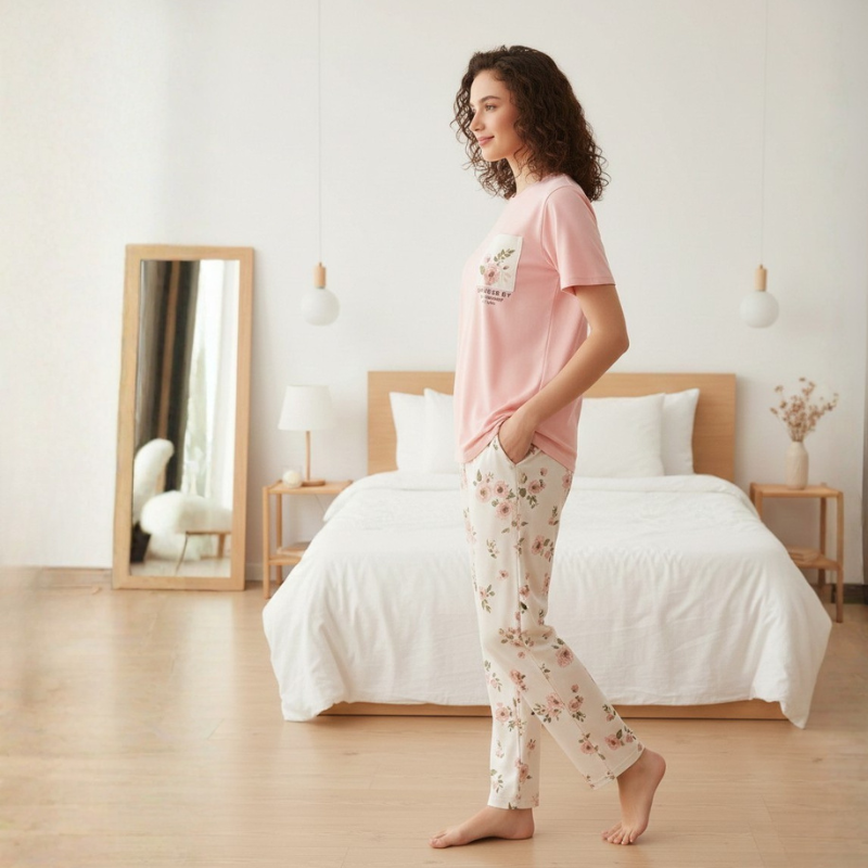 Pink Flower Printed Trouser Night Wear
