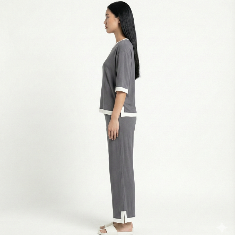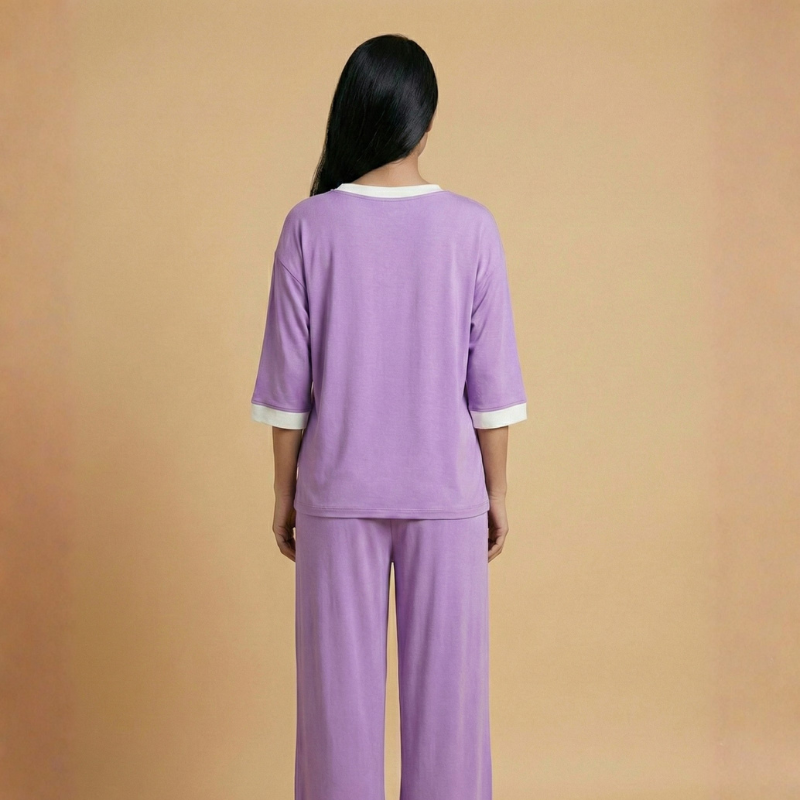 Plain Tshirt With Black Round Neck And Plazo Pajama (Half Seeleve)