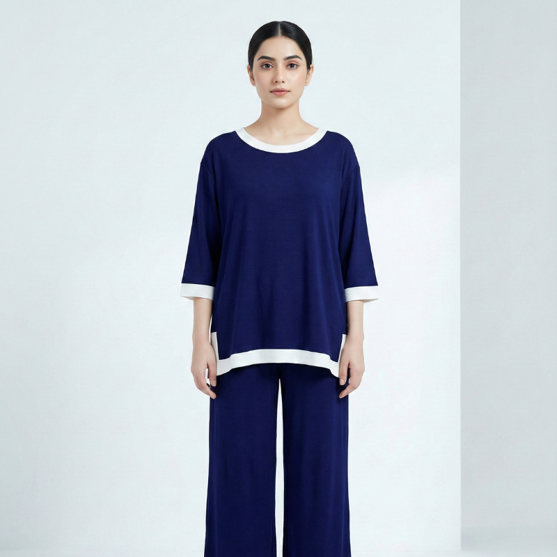 Plain Round Neck Plazzo PJ Set